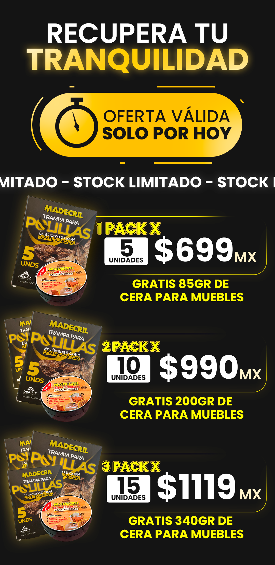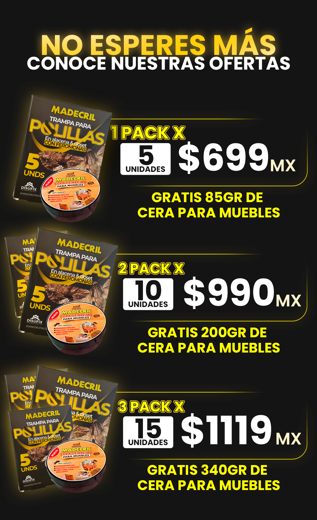 atrae y capturan eficazmente a las polillas de alimentos y textiles, interrumpiendo su ciclo reproductivo desde la raíz.